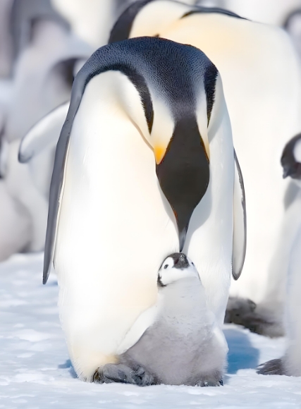帝企鹅,现存企鹅家族中个体最⼤的企鹅,堪称企鹅世界中的巨⼈。它们⼀般体⾼在90厘⽶以上,最⼤可达到120厘⽶,体重达30~40公⽄。
