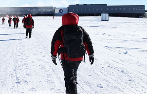 在探险向导的带领下,队员们将进⾏适应性徒步训练,调整⾝体状态,充分适应南极⼤陆的⽓候和地理环境。