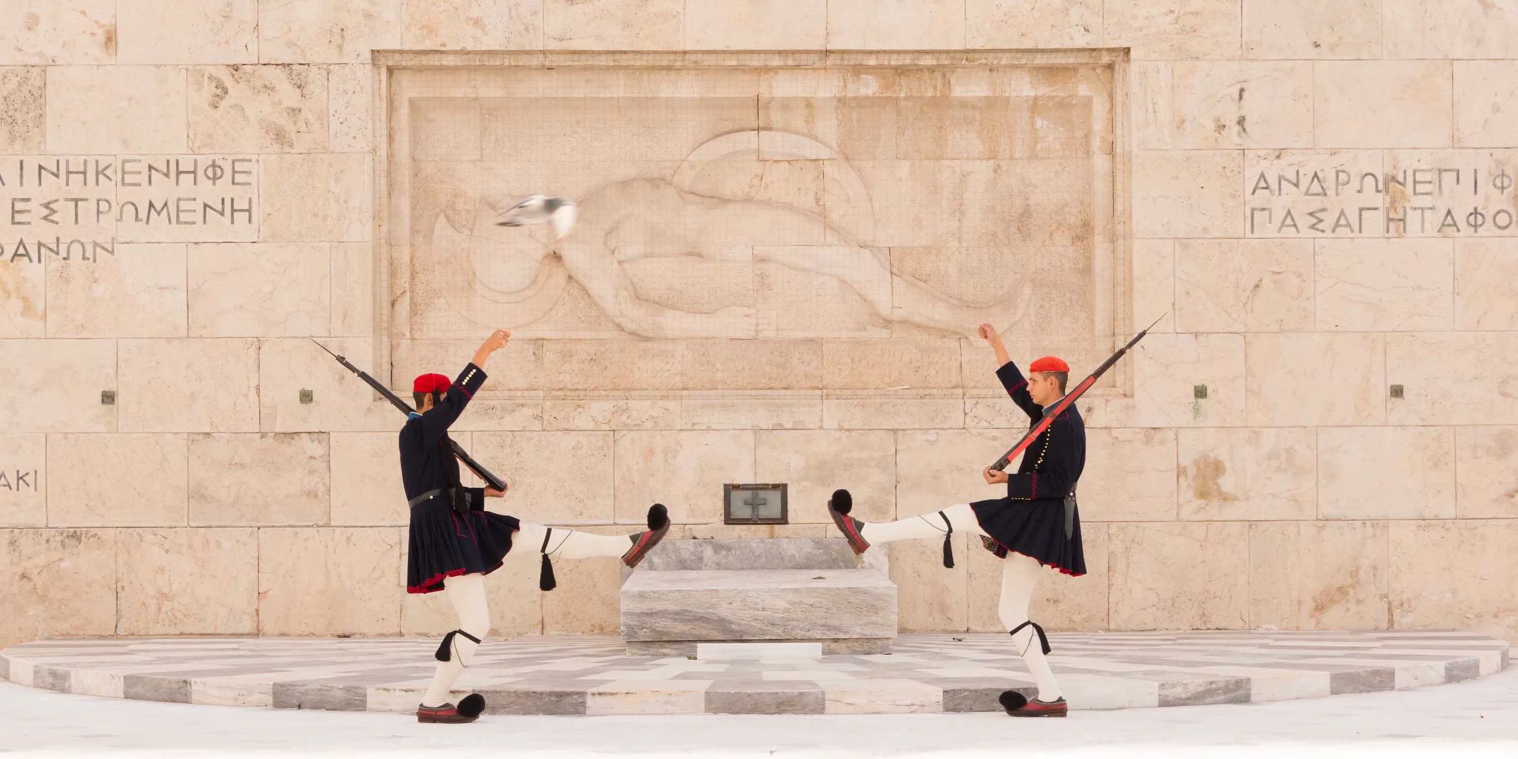 搭乘早航班 ,前往希腊首都-雅典,到达后办理酒店入住,稍作休息。午餐后,浏览【宪法广场】,整点时可以观看士兵换岗仪式;外观【议会大厦】;【无名战士纪念碑】-“这里是全世界杰出战士之墓”,“是安放无名战士的灵柩”;【大学街】;车览【奥林匹克竞技场(外观)】后,前往【普拉卡】。