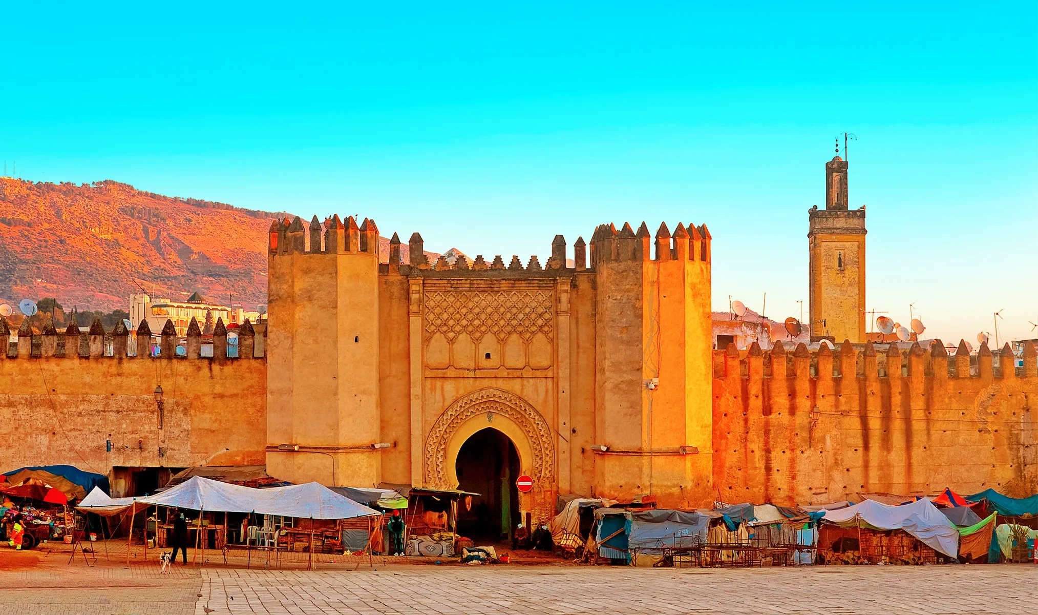 菲斯古城(世界文化遗产);布日卢蓝门;卡拉维因大学:(外观,会背诵古兰经的穆斯林可以入内);1981年被联合国教科文组织 UNESCO列为世界文化遗产)中的世界第一所大学。参观Mederssa Bou Inania (古兰经经学院)Fountain Nejjarine泉、伊德里斯陵墓(古都修建者)外观,会背诵古兰经的穆斯林可以入内;手工艺品作坊;大染缸:参观“臭名昭著”的大染缸;菲斯染坊。游览结束后前往舍夫沙万。