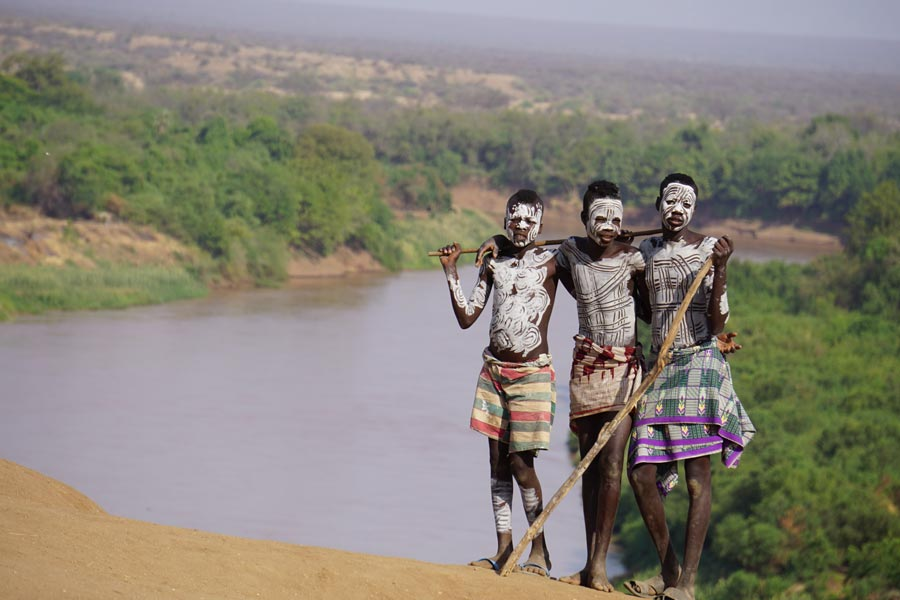 前往哈莫尔部落原始村庄。【哈莫尔部落】是至今保留最原始的部落。哈莫尔女人是这些个部落里最美丽的女人。她们的时装就是一张牛皮或者羊皮裹在下身做裙子,头发编成无数的小辫子,身上和头发上涂着牛油和泥土混合的涂料,油亮的棕色。女人大多赤裸着上身,而脖子里却挂满了贝壳和珠子穿成的项链。前往【卡洛人(karo)】聚居地。卡洛人在嘴唇下部镶上金属针和其他装饰物。此外卡洛人喜欢在身上和面部涂上各种花纹,卡洛女人通常带着贝壳和彩色玻璃珠子穿成的项链,这些项链是她们的丈夫和情人们赠送,所以从一个女人脖子上项链的多少,可以看出她的受欢迎程程度。此外,如果运气好,可以看到卡洛男人向女人求欢示爱,盛装披挂,并带上漂亮的羽毛的场景。 备注:已深入埃塞南部部落地区,食宿条件非常有限。