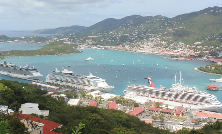 游轮抵港维京群岛的圣托马斯。圣托马斯是加勒比海巡游的巅峰之地,提供一系列令人兴奋的岸上游览活动, 展示岛屿的自然美景和文化活力。在领队的带领下参加岸上游览项目,游览时间5 小时。前往维尔京群岛国 家公园★,在那里您可以欣赏到壮丽的山景、湛蓝的海水和郁郁葱葱的绿色植物。惊叹于卡尼尔湾和特兰克湾 的美景,那里的白色沙滩与翠绿的山林交相辉映。随后参观安娜堡糖厂,了解圣约翰岛的历史。探索1780 年 代糖厂种植园的废墟,包括工厂、风车和奴隶区,了解岛上的丹麦定居者。