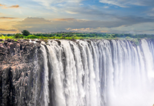 早餐后,游览【维多利亚瀑布津巴布韦段】,游览壮观的维多利亚瀑布,维多利亚瀑布又称莫西奥图尼亚瀑布,位于非洲赞比西河中游,赞比亚与津巴布韦接壤处。宽1700多米,最高处108米,为世界三大瀑布之一。晚餐后,酒店休息。