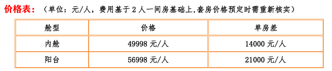 交通:邮轮,旅游用车 住宿:邮轮