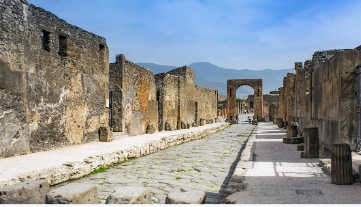 酒店自助早餐后,乘车前往游览那不勒斯这个“意大利永恒的剧场”,参观拿坡里市中心的公民投票广场,广场上拥有壮丽外观的拿坡里皇宫,气势不凡的保罗圣方济教堂,闻名的圣卡罗歌剧院,漫步美人鱼大道。 之后专车前往参观罗马帝国时期建筑遗迹-【庞贝古城*】,此城于公元79年因维苏威火山爆发,遭大量火山岩灰所覆盖而被埋在地下,一直到1748年才被挖掘出来,实为保存最完整的古迹之一,其规模更是惊人,至今有1/3仍在挖掘中,当您参观此地废墟之时,必能让人臆想当时1900年前人们的生活及难得一见的城市景观,彷佛穿越时光隧道,重回两千年前的时空体验古城风光。游览完毕后,前往民谣之乡—苏连多,苏连多位于半岛突出海面的山崖上,依山傍海风光旖旎,景观奇特壮丽,在古代便已是罗马王公贵族最钟爱的渡假胜地及冬季避寒胜地;之后入住周边小镇休息。
