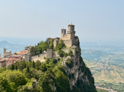 酒店自助早餐后,出发前往“邮票王国”;市区游览,外观市政府大楼和自由雕像,这是最著名也是最中心的建筑,面前的自由广场上有这象征着共和国对自由向往的自由女神雕像。自由女神雕像象征着这个古老的共和国对自由的向往与憧憬。 大教堂位于蒂塔诺山上,是一座新古典风格的建筑,完工于1838年,建筑采用新古典主义风格。外墙用纯白的大理石建成。内部装潢没有过分的华丽装饰,反而是典雅的白色雕刻,让整座教堂显现的十分的庄重。外观罗卡·古阿依塔城堡,建于11世纪的罗卡·古阿依塔城堡屹立在高处,它是古时候圣马利诺主要的城防屏障。堡垒修筑在悬崖上,形势险峻,呈五棱形状。晚餐后入住酒店休息。