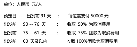 1、行程中所列航班经济舱团体机票及相关税费。(团队机票不允许改名、退票、改票、改期,如果游客因个人原因临时放弃机票的,机票费用均不予退还;不含航空公司临时新增的燃油附加费)