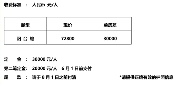 3、单间差费或加床费,邮轮舱房升舱差价;